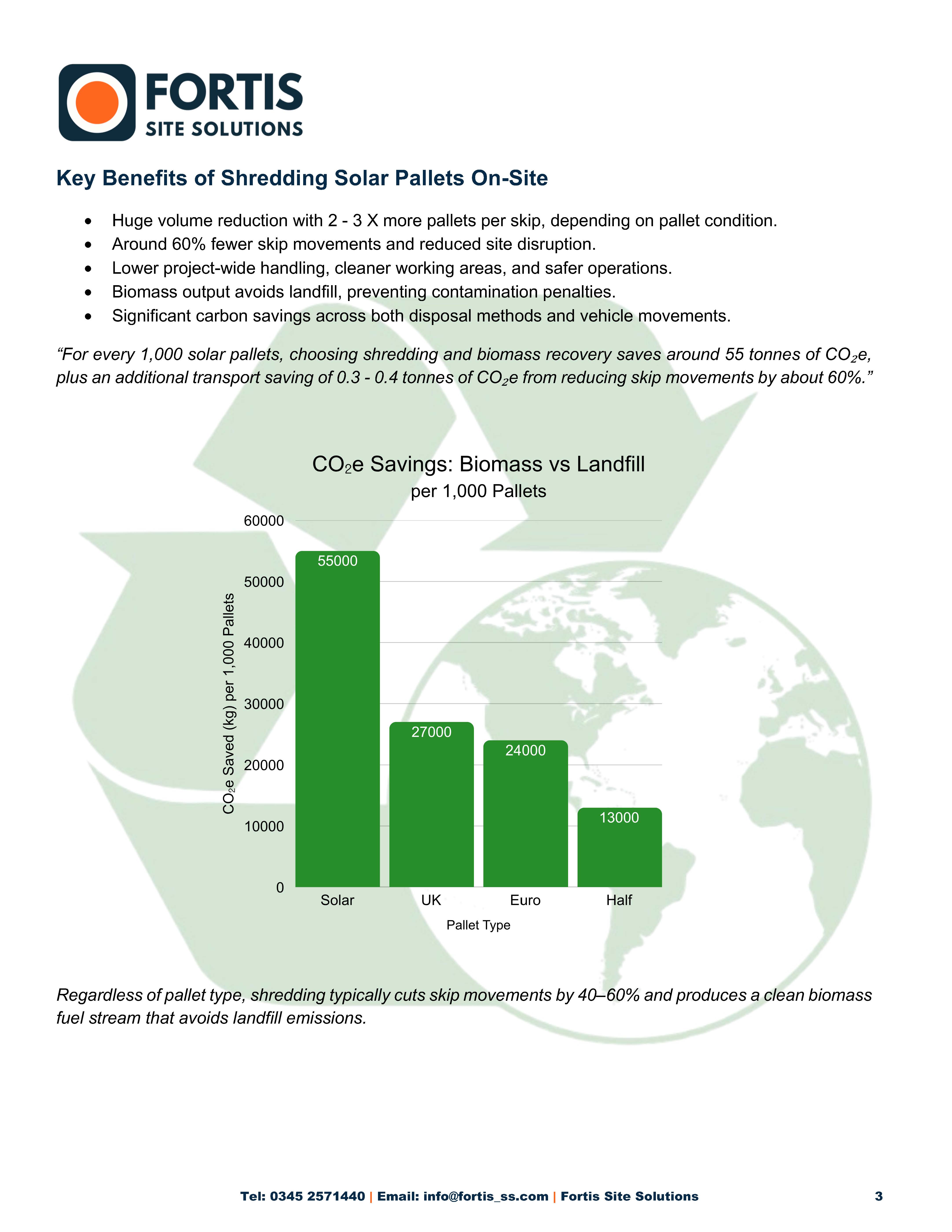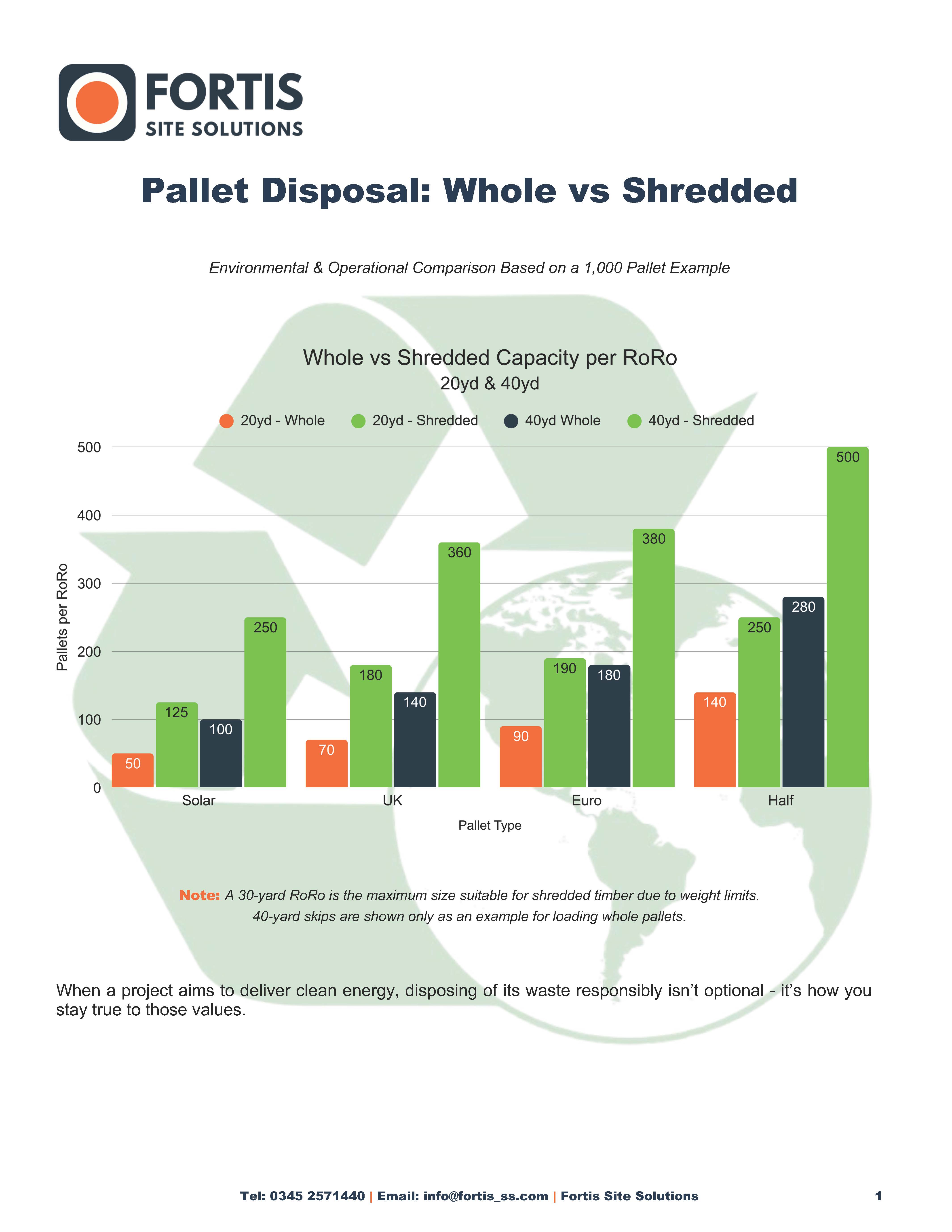 When it comes to managing pallet waste, the difference between whole and shredded disposal is bigger than most people expect. The data shows major environmental gains, fewer vehicle movements, and cleaner site operations when shredding and sending timber to biomass instead of landfill.